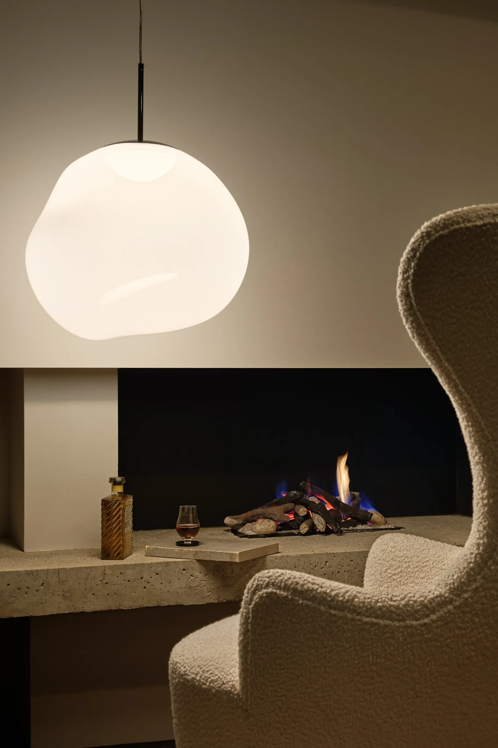 Melt pendant is a beautifully distorted pendant with a matching ceiling rose. Featuring an integrated LED module, it creates a mesmerizing hot-blown glass effect when on and a mirror-finish effect when off. Made in Germany using high-tech manufacturing, it evokes molten glass or the interior of a melting glacier.