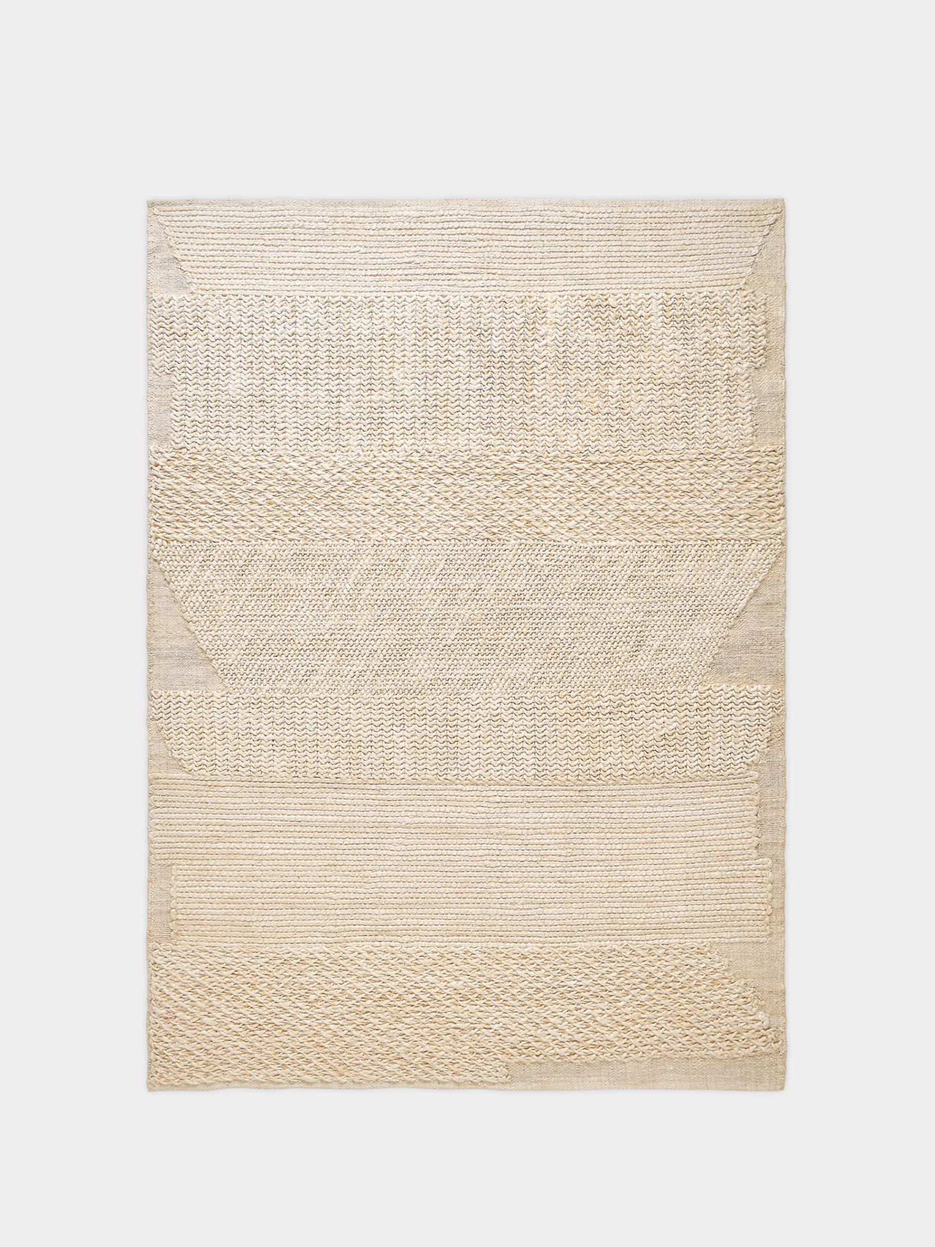 The KNOTTY Rug is inspired by Tom Dixon’s love for stacking blocks of shapes, which is reflected in its bold yet subtle design. Handcrafted from irregularly spun bleached jute yarn, the rug features a range of weave patterns that create a rich, tactile surface. The interplay of these patterns adds depth and texture, bringing an organic and earthy feel to any space. Available in two sizes, its natural tones effortlessly connect with nature, adding warmth and character to a space.