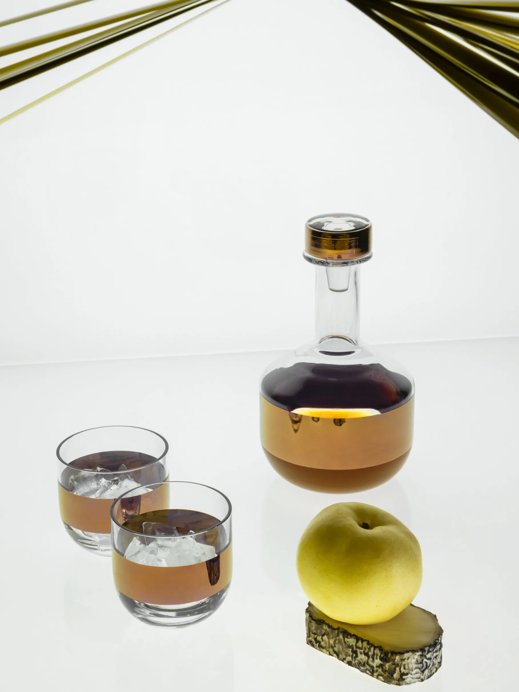 The Tank Whiskey Decanter takes its inspiration from the functional shapes and volumes of scientific glassware. Made from mouth-blown glass and crafted in Poland, the hand-painted copper detailing gives a modern and distinctive finish. Featuring a cold-cut and polished edge, the Tank Whiskey Decanter has an etched Tom Dixon logo sand-blasted on the base.
