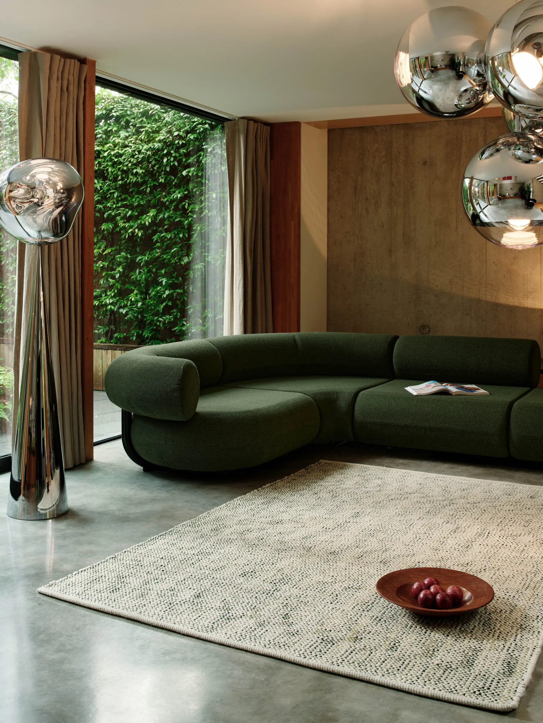 The TWEED Rug features a unique blend of green flecks, created by combining three different colours, ensuring that each piece is one of a kind. The rug’s design incorporates a mix of yarn thicknesses, giving it a luxuriously soft feel underfoot. Available in two sizes, it boasts a contemporary aesthetic, with its irregular pattern adding depth and character to any room.