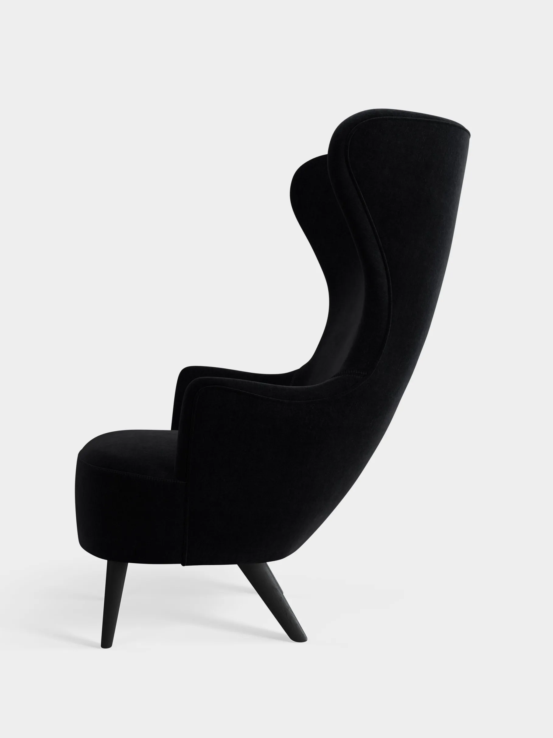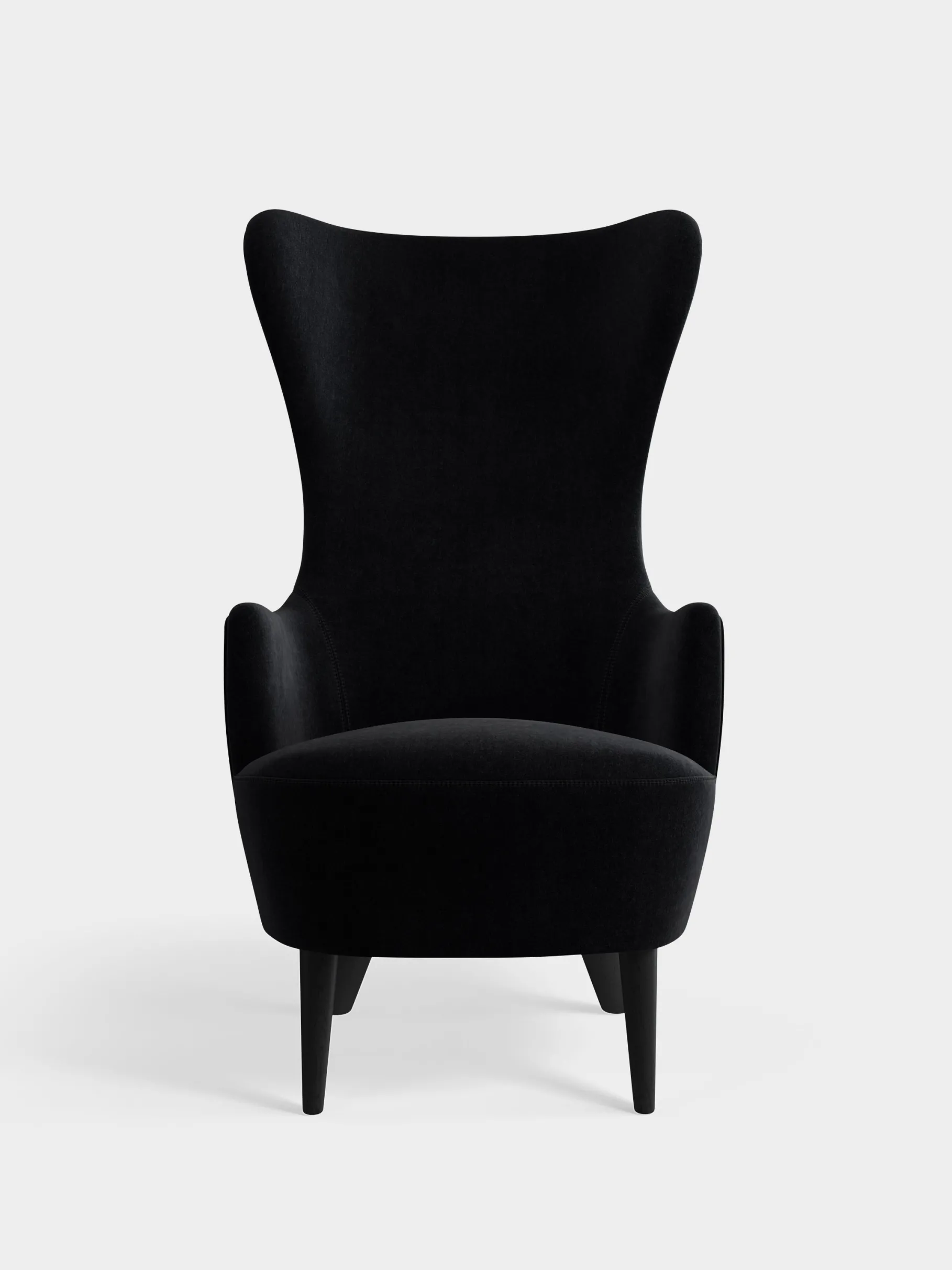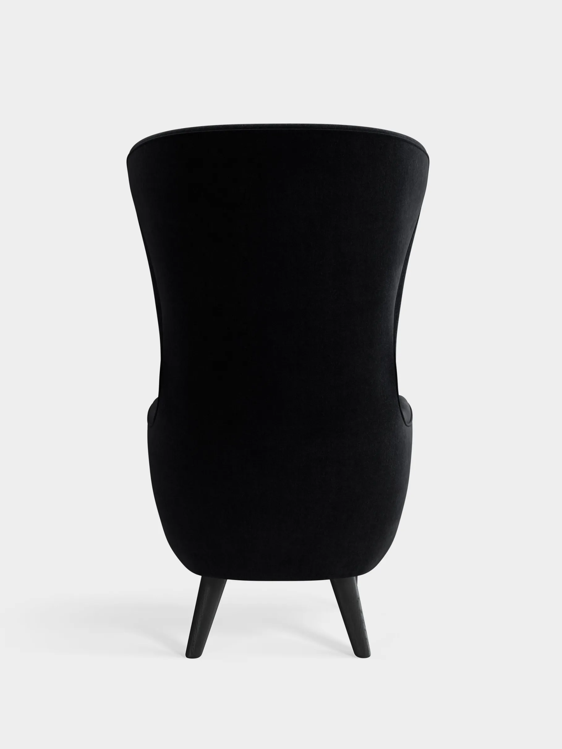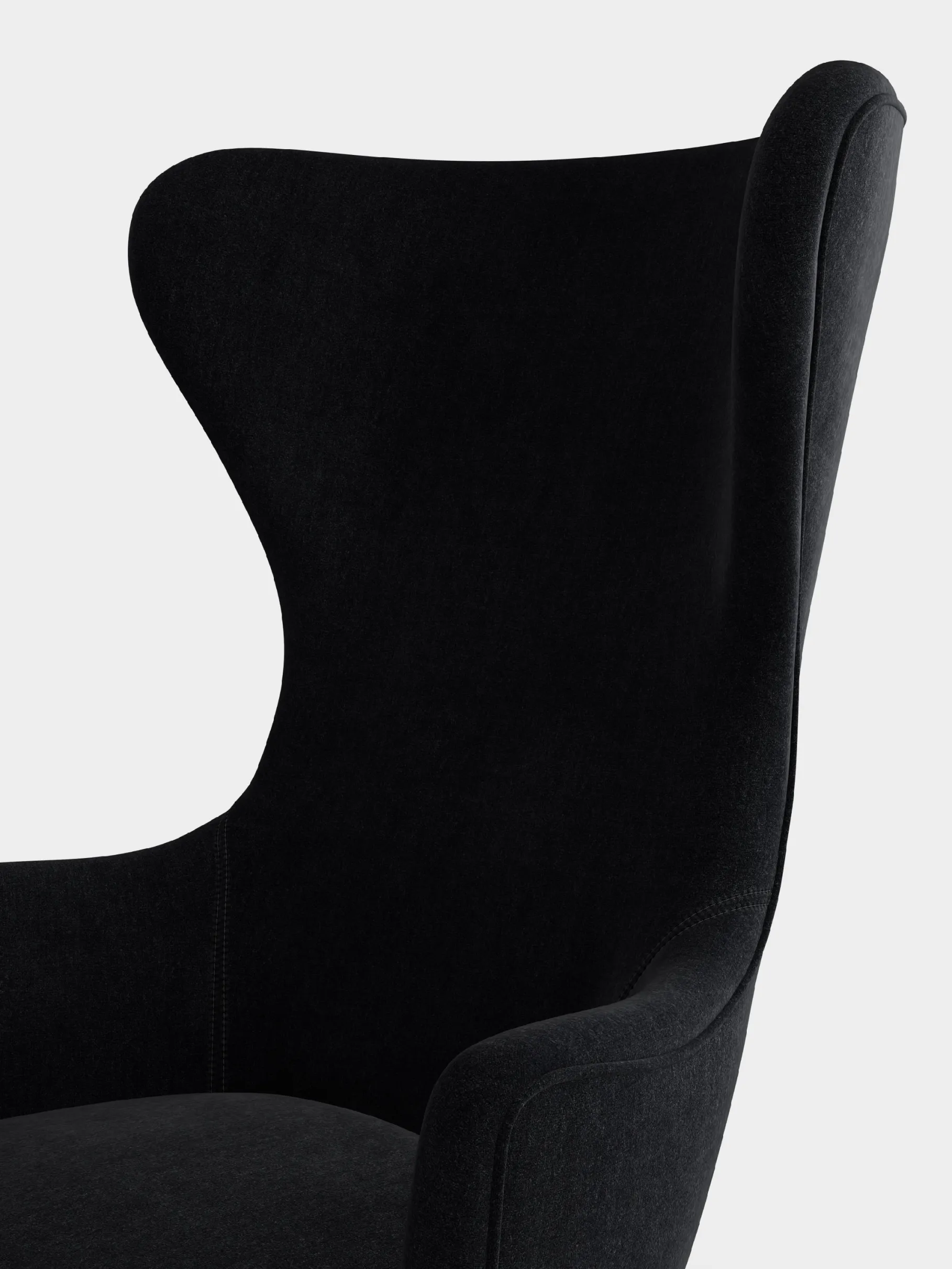 Wingback is a nod to 17th century English wingback and balloon-back archetypes, rethought and updated for the 21st century. Its recognisable silhouette with expressive sweeping curves is formed through a hard sculptural foam shell concealing a steel frame with modelled plywood base. It is then covered with cut foam and given a pocketsprung seat cushion for maximum comfort.